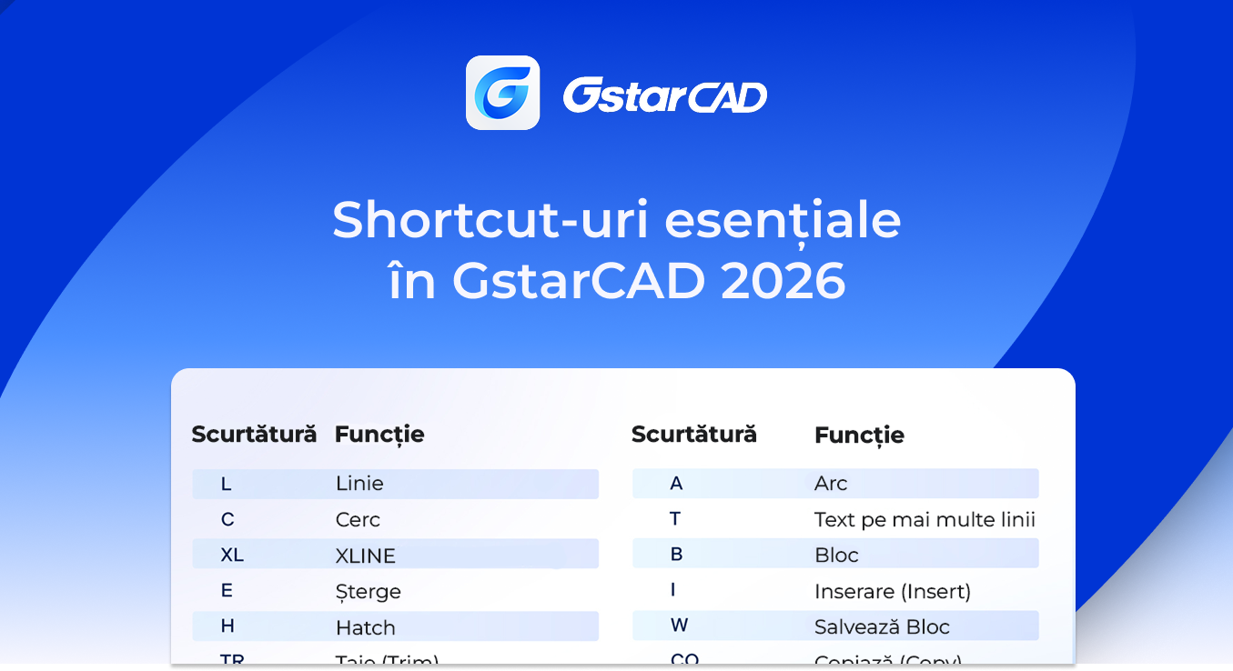 Știri > Blog > Shortcut-uri esențiale în GstarCAD 2026 – economisește timp și crește productivitatea