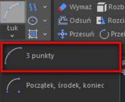 Narysuj dowolny łuk np. metodą przez 3 PUNKTY.