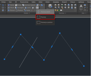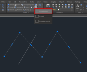 Kolejnym rozwiązaniem będzie opcja PRZERWIJ, gdzie po wybraniu bazowej polilinii jako punkt