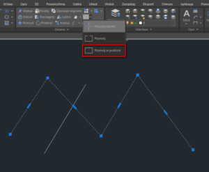 PRZERWIJ W PUNKCIE natomiast pozwoli nam na przerwanie polilinii w wybranym punkcie bez