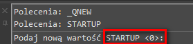 Jeśli w Linii poleceń wpiszesz: STARTUP i zatwierdzisz Enterem możesz wpisać wartość zmiennej: 1 lub 0.