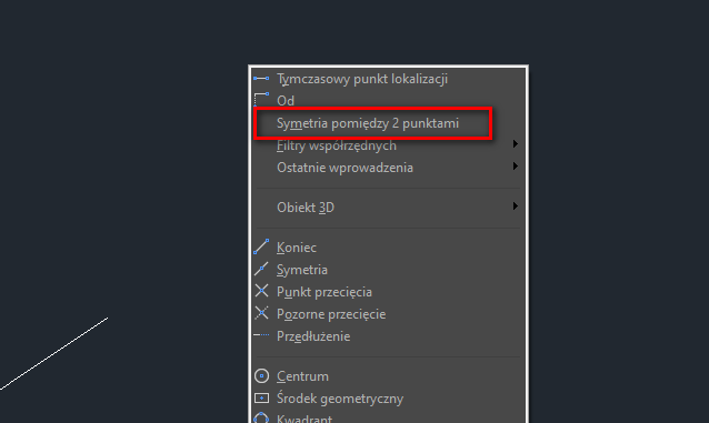 … możesz w GstarCAD wyznaczyć SYMETRIĘ MIĘDZY DWOMA PUNKTAMI jako np. punkt