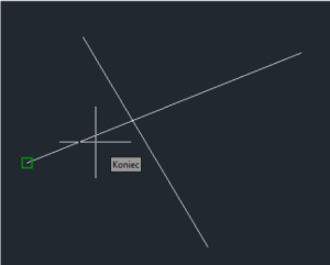 z narysowanych wcześniej linii. Program sugeruje mi lewy koniec wyróżniając go zielonym