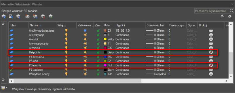 2. tworzymy lub przenosimy już gotowe Rzutnie na warstwę Defpoints, która tworzy się